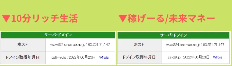 同じサーバーで管理されてるので、2つの会社の”運営者は同じ”であると分かりました。
