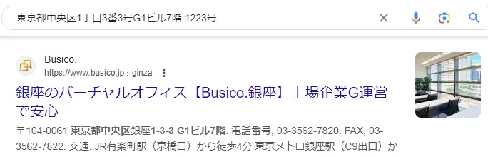 実在していて一見信頼できる会社のように思えますが、所在地を調べると「バーチャルオフィス」を利用していることが判明!