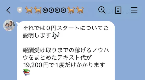 すると、いきなり「みか」という女性が登場し、この先に進むには19,200円の「マニュアル」を購入する必要があると告げられました。