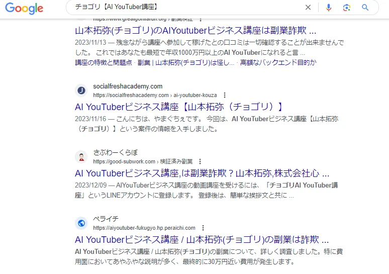 チョゴリ【AI YouTuber講座】がどのように評価されているのか、Google検索で口コミを調べました↓