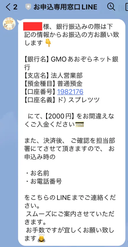 費用の支払い先ですが、株式会社アオヤマでは無く「合同会社スプレッツ」という会社に指定していました。