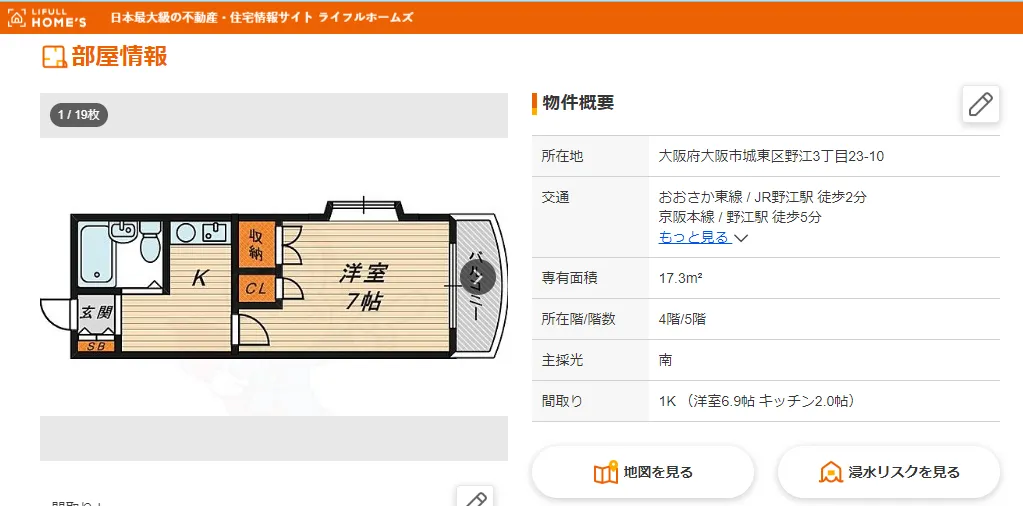 アパートの募集要項を見ると、部屋の間取りは僅か17㎡の1k。