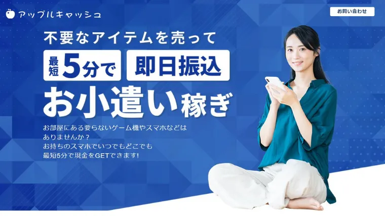 アップルキャッシュとは、不要なアイテムを売って「最短5分」で「即日振込」してもらえるお小遣い稼ぎサイトです。