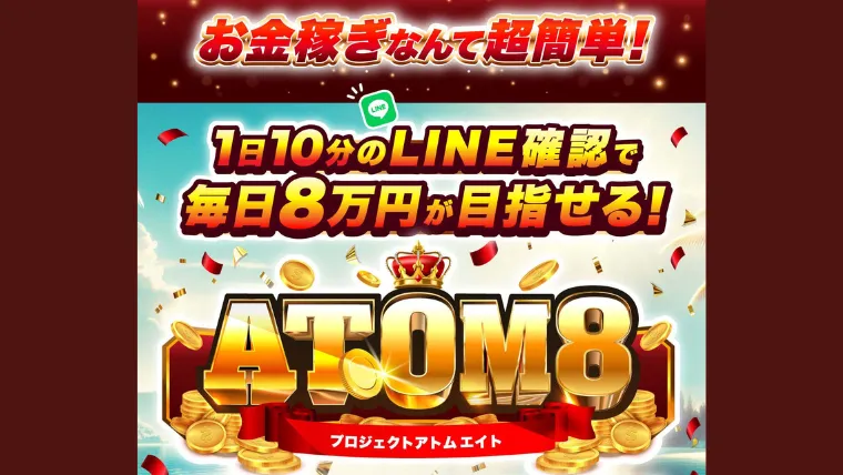 伊藤忠のATOM8とは、「1日10分のLINE確認で毎日8万円が目指せる」と謳う副業サイトです。