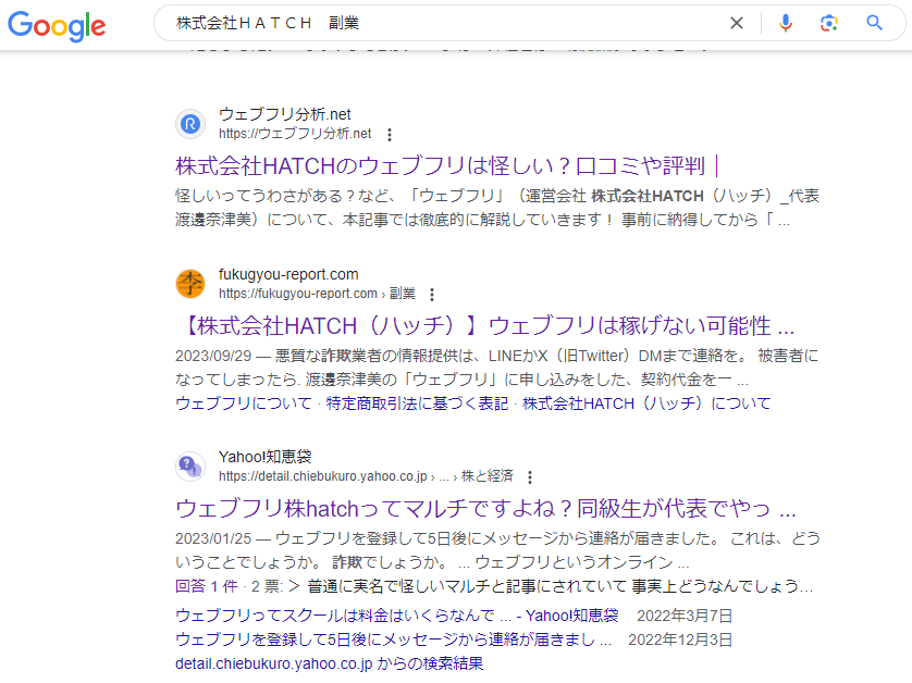 同じ住所に所在する「株式会社HATCH」を調べると、似たような情報商材を販売していたことが判明。
