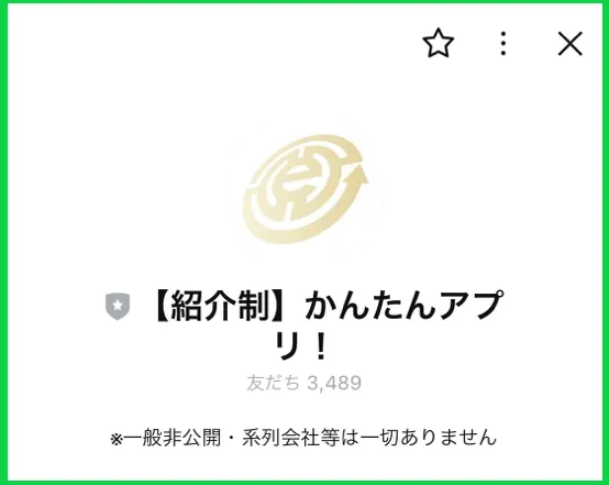 紹介されたのは「紹介制かんたんアプリと称した公式LINE。