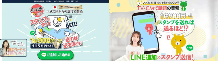 スタンプを送れば送るほど稼げると告知し、1件/900円~の報酬を宣伝していました。