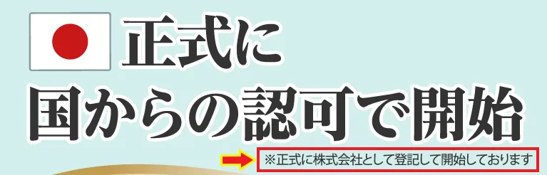 公式サイト上では、「正式に国からの認可で開始」と自陣満々にアピール。