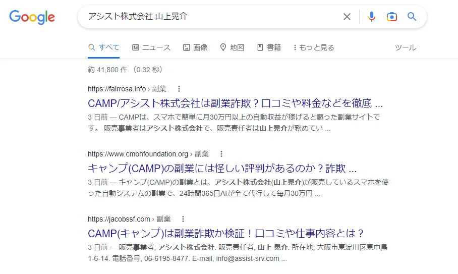 CMAPの口コミを調べると、検索結果は否定的な意見で埋め尽くされてる状態。