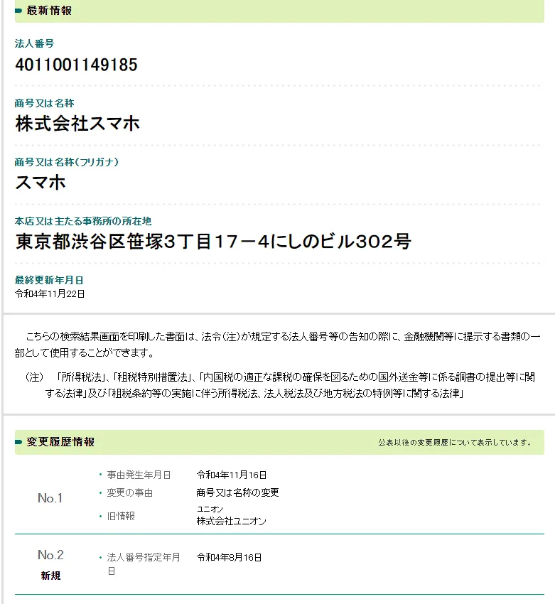 設立当初は「株式会社ユニオン」と称していましたが、2022年11月16日に「株式会社スマホ」に名称変更。