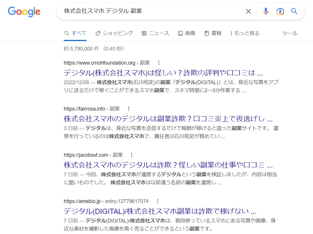 株式会社スマホ「デジタル」を検索すると、否定的な意見で埋め尽くされてる状態。