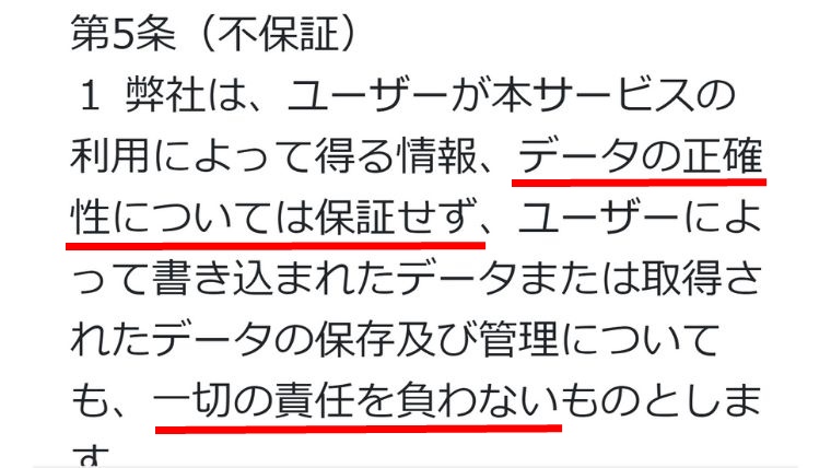 サービスを開始してしまうと、データの正確性が保証されていないようです。