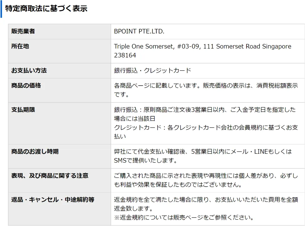 | 販売業者 | BPOINT PTE.LTD. |
