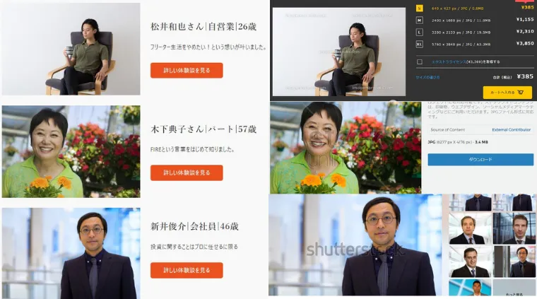 口コミの主だと思われる人物は、ネット上で販売されていた「フリー素材」を使用していました。