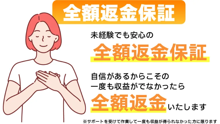 仮に稼げなかった場合でも、お金が戻ってくるので失敗するリスクを負いません。