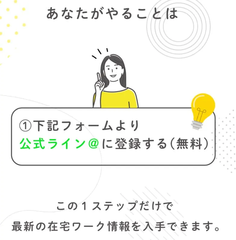 HappyWork(ハッピーワーク)の事前説明は、「下記フォームより公式LINE@に登録する(無料)」としかありません。