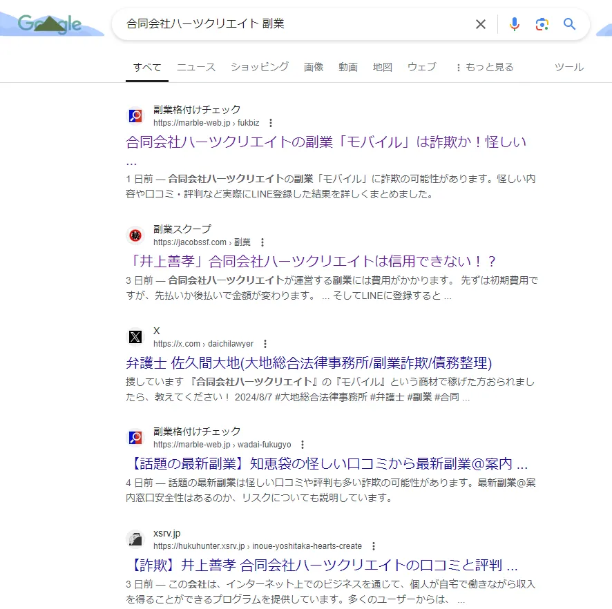 SNSでは「合同会社ハーツクリエイトの副業で稼げた人いますか?」と弁護士が情報提供を求めている異常な状況でした。