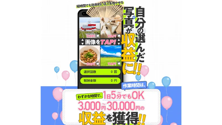 画像を選択するだけで3,000円~30,000円稼げると言われたら、怪しくても興味が湧いてくると思います。