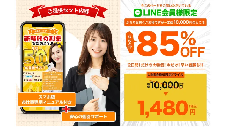 本当にこれだけで収益獲得が実現できるのか実際に公式LINEを登録すると、突然1,480円の「マニュアル」を購入するよう指示されました。