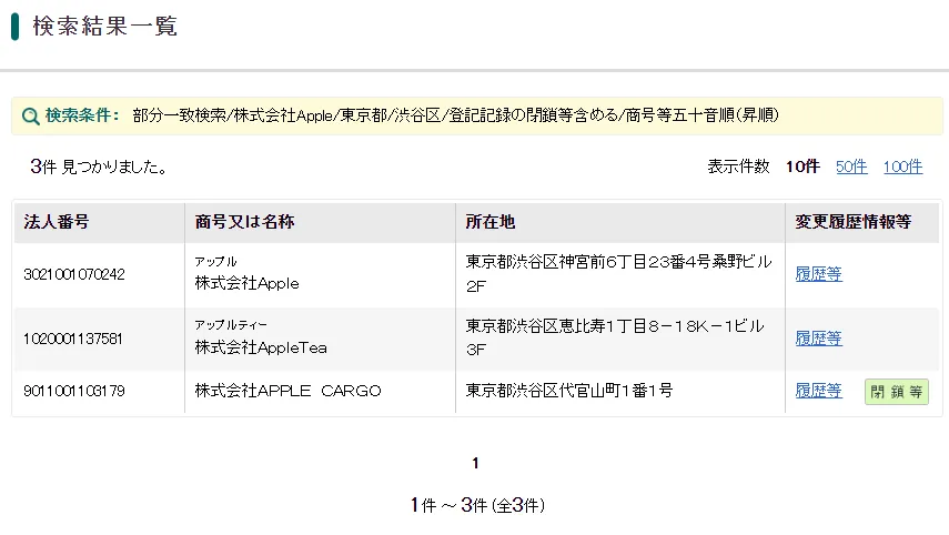 東京都渋谷区に株式会社Appleは3件あるようですが、記載の所在地には存在していませんでした。
