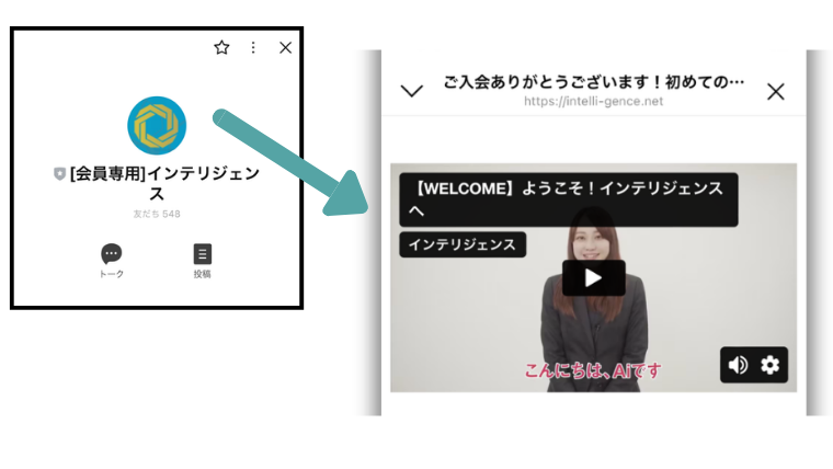 インテリジェンスの公式サイトからLINEを追加すると、直ぐに案内メッセージが届き1本の動画を視聴するよう指示されます。
