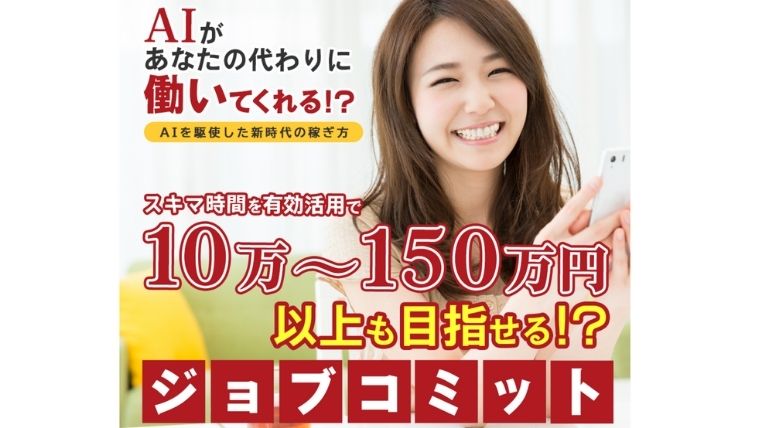ジョブコミットでは1日に5分~30分程度のスマホ作業で、月収150万円以上も目指せると謳っています。