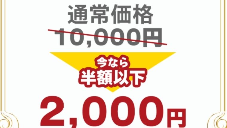 公式サイトで、通常価格10,000円が今なら2,000円とあります。