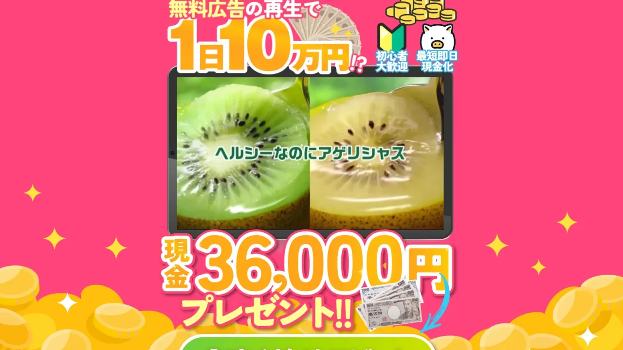 「無料広告の再生で1日10万円」を謳って、利用者の募集を行っていました。