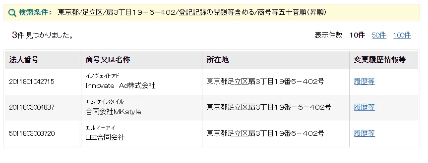 合同会社MKstyleと同じ所在地には、他に2つの法人が登記されていました。