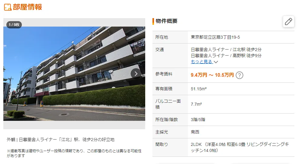 所在地「 東京都足立区扇三丁目19番5-402」を調べると、住居用のアパートがヒット。