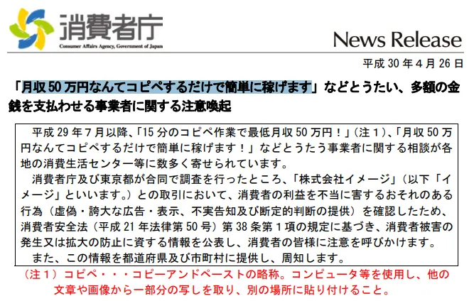 「コピペするだけで稼げる」は昔からある騙し文句です。