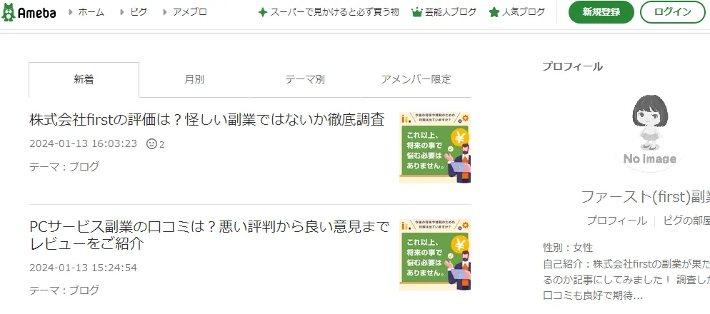 PCサービスを勧めるブログは、「ペライチ」は「abemaブログ」など簡易的にブログが作成できるサービスを利用したものです。