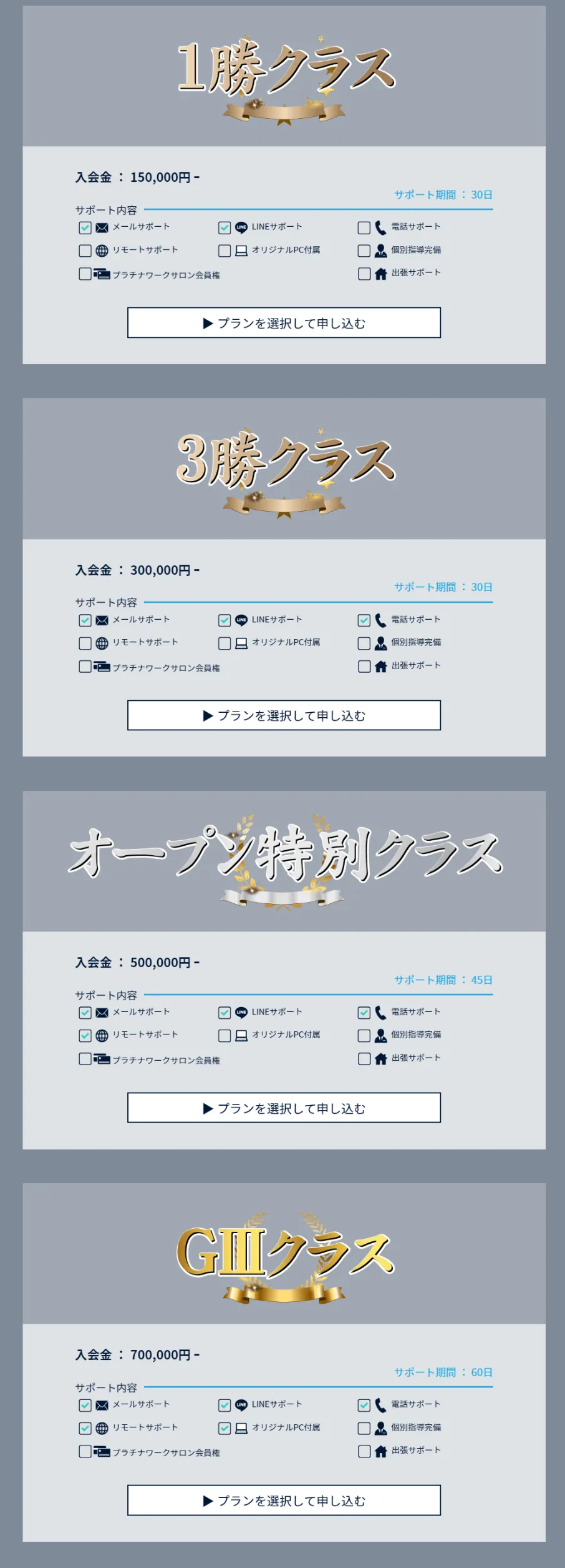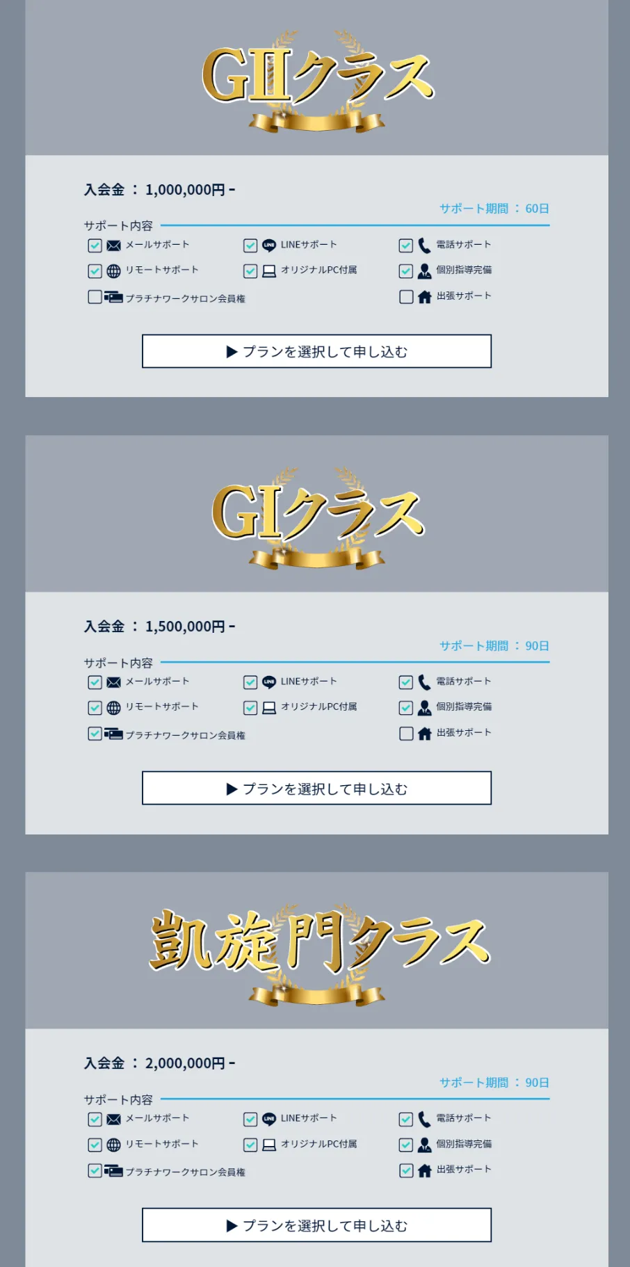 加入するプランに応じて、受けれるサポート内容が異なります。