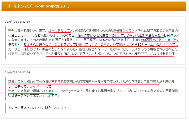 ゴールドシップは悪質な副業だと、参加者に暴露されていました。