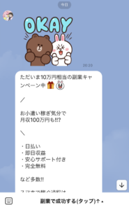 LINE登録を行うと簡単に稼げる副業の案内が続々と届きます。
