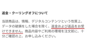 しかし、「返金・クーリングオフについて」の項目では返金などは受け付けていないといった内容が書かれていました。