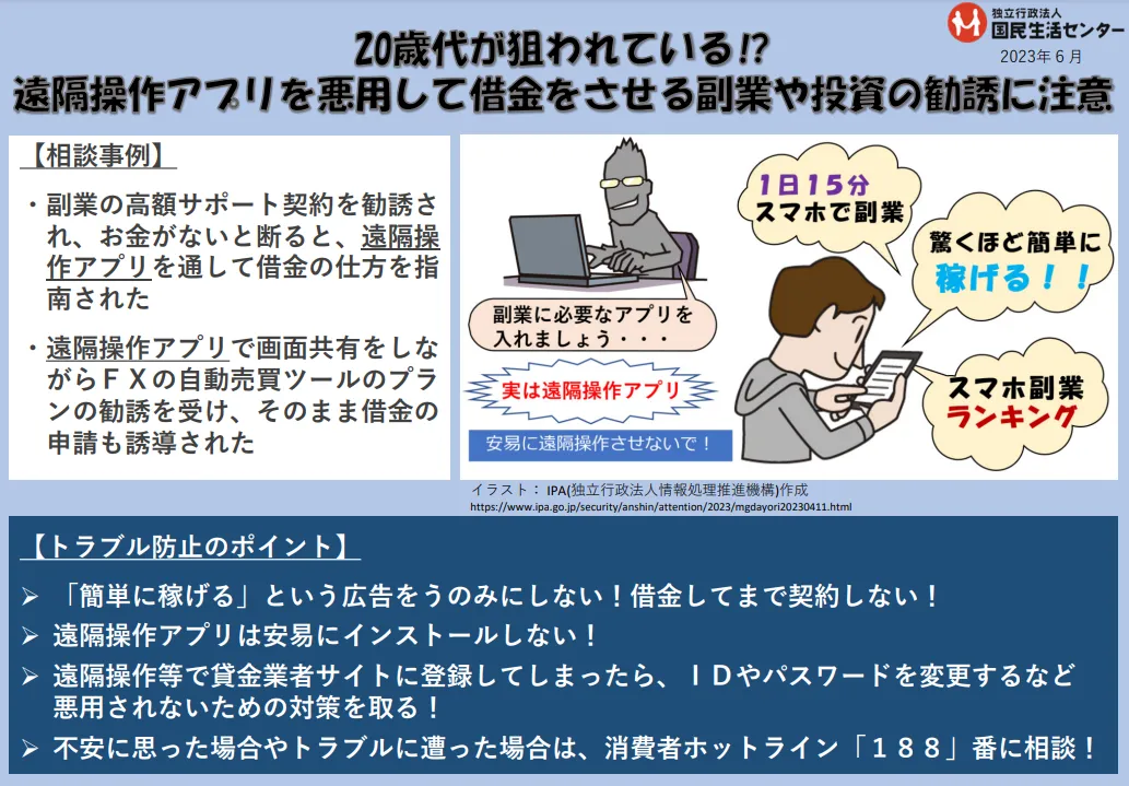 実は近年、同様の手口で高額費用を騙し取られ借金を負う被害者が続出しており、消費者庁も注意を呼び掛けています。