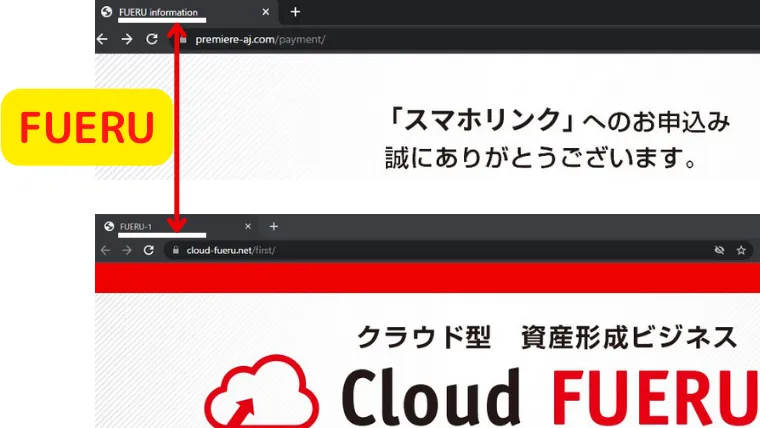 ここで申込画面を見てみると、URLに「cloud-fueru」の文字を確認