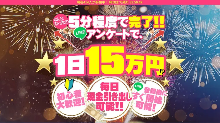 「LINEアンケートに回答するだけで1日15万円は本当?」