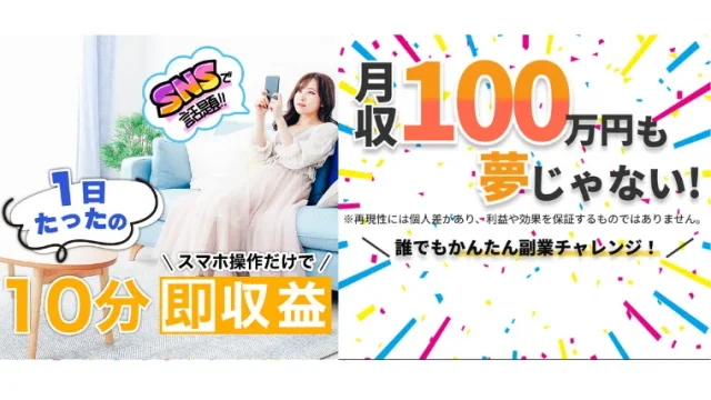 1回/1,000~3,000円の報酬が即発生と謳い、作業時間5~10分と宣伝していました。