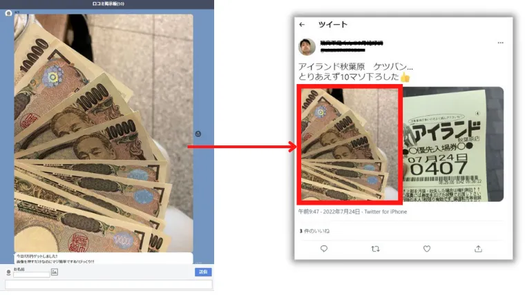 タプタプビジネスの口コミ掲示板に投稿されていた画像を検索してみると、Twitterで拾った画像を使用していた事が発覚。