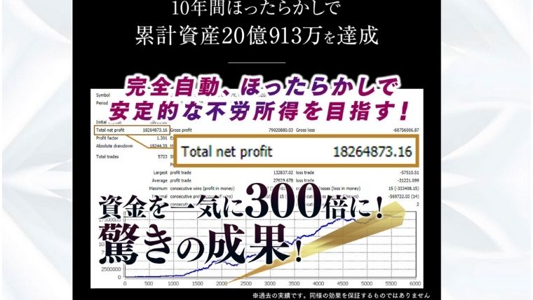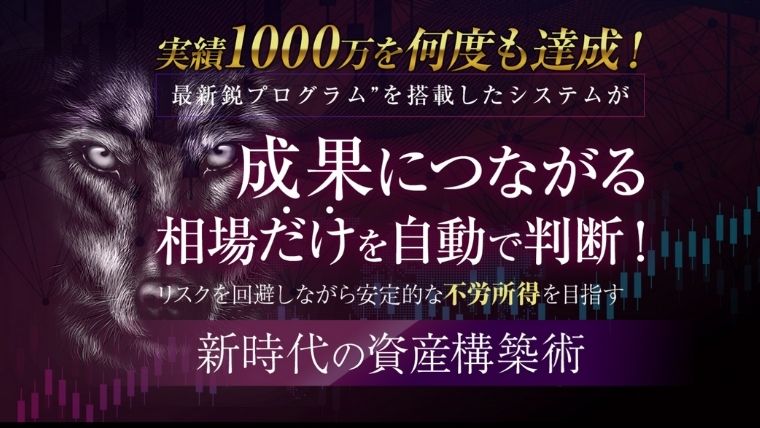 「結果の出る相場」をシステムが自動判断してくれるので、ほったらかし、ボタンひとつで1000万円越えの成果が上がるそうです。