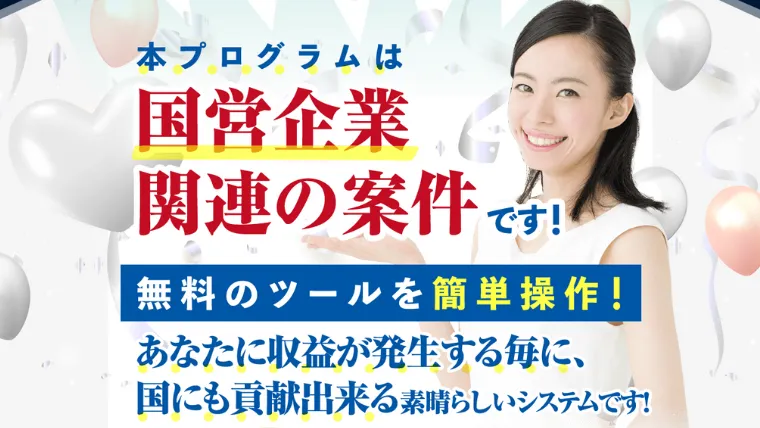 「国営企業関連の案件」と謳い、無料のツールを簡単操作するだけで報酬が得られると宣伝していました。