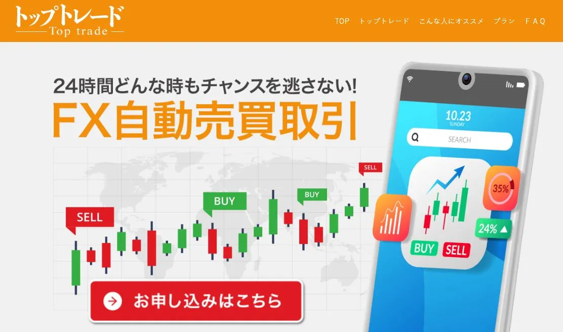 トップトレードは、複数種類の通貨ペアに対応したEA搭載型自動売買ツールになります。