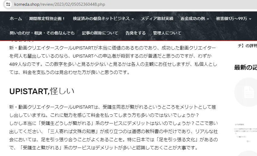 • 動画スクール「UP!START」は安全?