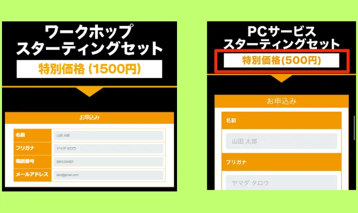 ワークホップでは、2つの「安心特典」をアピールしてます。