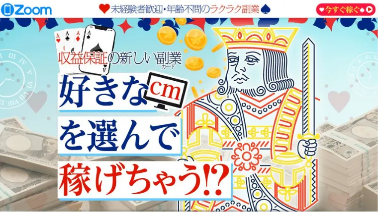 「株式会社KING」が提供する副業サイトは、「CMを見るだけで稼げる」手軽なビジネスモデルを謳います。